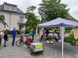 Seit vielen Jahren organisieren wir den Flohmarkt am Rheinufer und seit 2021 den Höfeflohmarkt, egal ob Wahlen anstehen oder nicht. Als Neuerungen gab es dieses Jahr neben dem Online-Plan auch eine gedruckte Papierversion, die fleißig genutzt wurde und gerade den Besuchern bei der Orientierung half. Auch gab es, von der Firma Lebenslagen gesponsert, mit Helium gefüllt Ballone, die die Teilnehmer (zur besseren Sichtbarkeit der Höfe) am TGM Gelände abholen konnten.